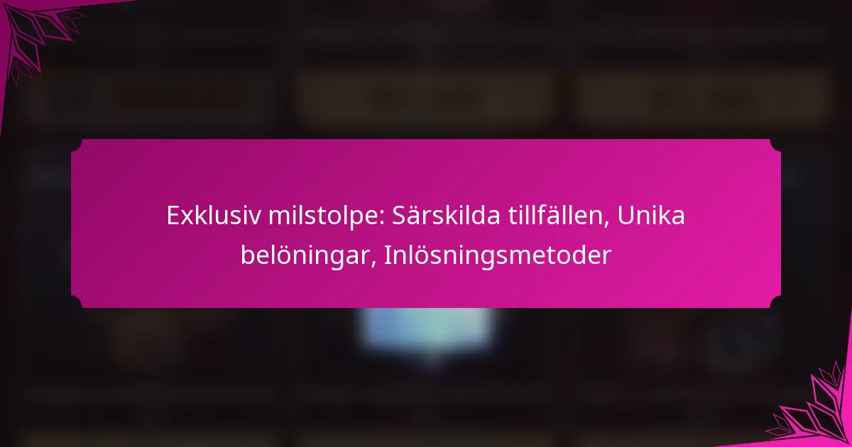 Exklusiva milstolpar är specifika mål som sätts inom spelet som spelare strävar efter att uppnå. De kan variera från att nå en viss nivå, slutföra en serie utmaningar eller delta i tidsbegränsade evenemang. Dessa milstolpar är utformade för att motivera spelare och ge en känsla av prestation.