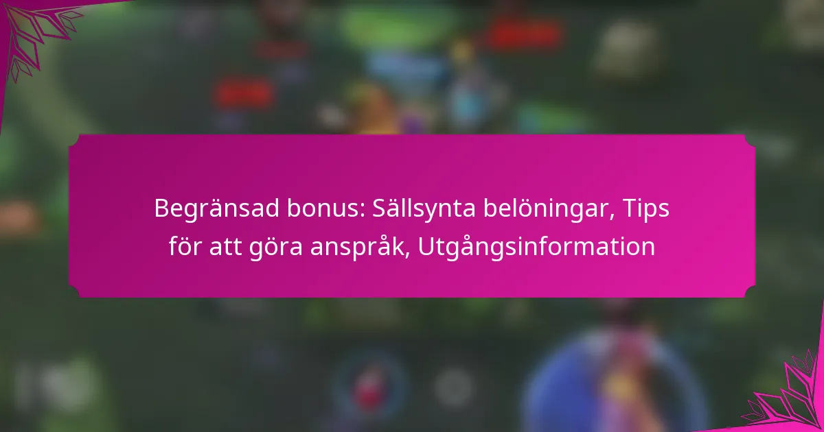 Sällsynta belöningar kopplade till den Begränsade Bonusen är exklusiva föremål och unika upplevelser som är tillgängliga under en kort period. Dessa belöningar inkluderar ofta tidsbegränsade erbjudanden som ger betydande värde jämfört med standardbelöningar, vilket gör dem mycket eftertraktade.