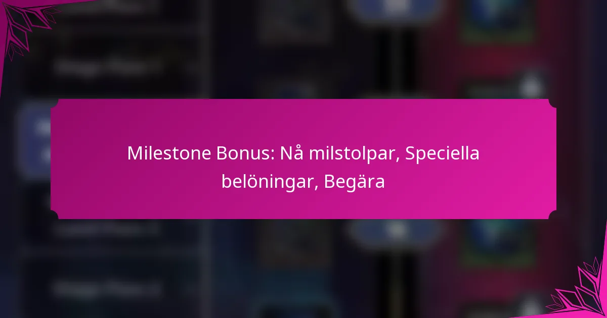 En milstolpsbonus är ett belöningssystem utformat för att erkänna spelare för att nå betydande prestationer inom spelet. Dessa prestationer kan inkludera att slutföra nivåer, samla poäng eller andra anmärkningsvärda framstegsmärken. Bonusarna kan variera i typ och värde, vilket gör dem till en viktig aspekt av spelarmotivation.